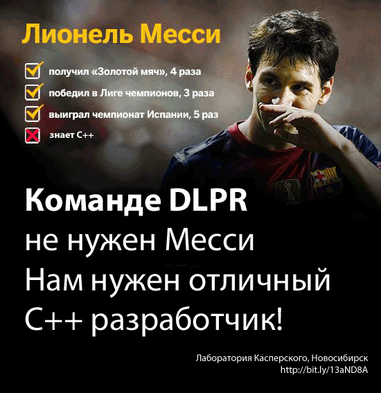 Re[3]: [upd] С++ разработчик, от 100 тыр, Новосибирск, Kaspersky La