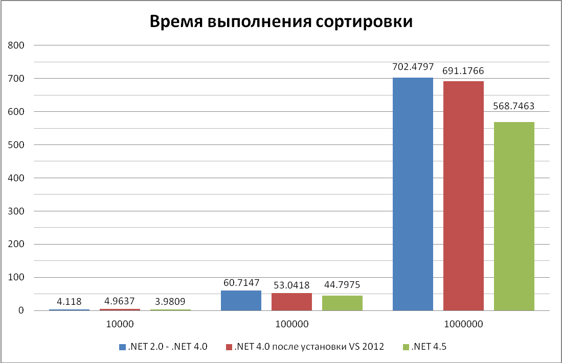 Но прежде чем переходить к рассмотрению алгоритма, надо сказать пару слов о разворачивании .NET 4.5. Для полного понимания ситуации советую прочитать мой перевод http://habrahabr.ru/post/191932/. При установке VS 2012, то есть при установке .NET 4.5, она заменяет сборки .NET 4. Фактически это значит, что даже когда вы пишете на .NET 4, вы использует сборки .NET 4.5. Получается интересная вещь: до установки 4.5 вы используете один алгоритм сортировки, после установки вы используете другой алгоритм, причем все происходит без вашего ведома.