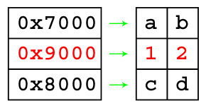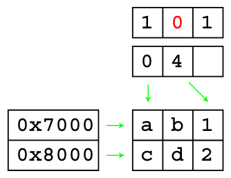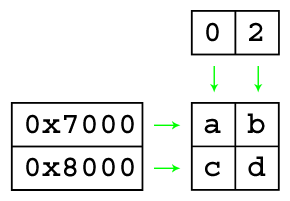 При такой организации чтобы получить адрес элемента двумерного массива нужно: по ИндексуСтроки взять значение АдресаСтроки из массива базовых адресов и прибавить к нему смещение: ИндексКолонки * РазмерЭлемента.