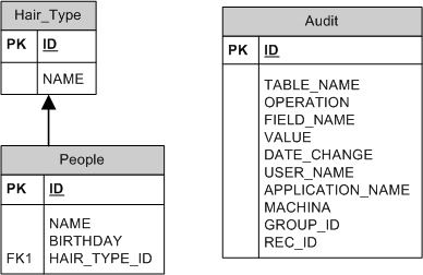 В поле NAME_OLD (Рис. 1) записывается предыдущее значение поля NAME, если оно было изменено. В поля USER_NAME и DATE_CHANGE записывается имя пользователя и дата/время последнего изменения, соответственно. В поле OPERATION записывается тип операции, например, значение 0 означает, что запись добавлена, а 1 – что запись изменена.