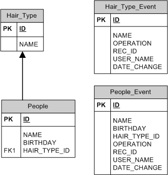 Предположим, что после всех наших манипуляций мы создали рабочую таблицу со структурой: OID, LNAME, MNAME, FNAME. Автоматически будет создана таблица-клон по ранее описанным правилам. При добавлении, изменении и удалении данных рабочей таблицы все изменения будут зафиксированы в таблице-клоне (Рис. 6).