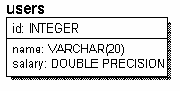 Область применения функции очень обширна. Приведём несколько примеров, в которых предполагается, что вы уже подключились к базе данных и в переменной hDbc лежит хэндл этого соединения. Контроль за подключением (отключением) к (от) источнику данных остаётся за программистом, остальную часть работы по выполнению SQL-запросов берут на себя функции db_printf и db_scanf. Предположим, что требуется программным путём создать таблицу users, изображённую на рисунке 1. Нет ничего проще: