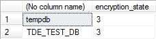 SELECT DB_NAME(database_id), encryption_state FROM sys.dm_database_encryption_keys |