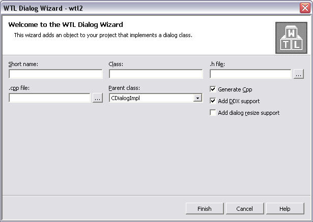 Три «колдуна» от автора WTL Helper, работающих в связке с этим плагином и позволяющих автоматизировать генерацию базового исходного кода для элементов управления и диалоговых окон на основе библиотеки WTL.