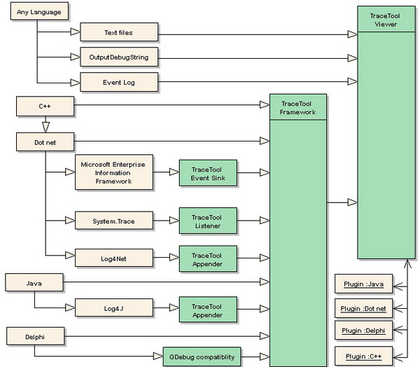 [C#] Библитека для реализации трассировки в приложениях, создаваемых с использованием C#, C++, Object Pascal (Delphi) и Java. По утверждению автора, «проблема с отладкой многозвенной системы, возможно, разработанной с использованием нескольких языков программирования, заключается в том, что отладочный вывод записывается в разные файлы, имеющие разный формат и находящиеся в разных местах». Предлагаемое решение призвано унифицировать и упорядочить соответствующую информацию: