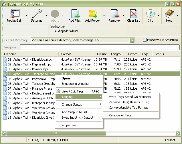 Редактор тэгов, поддерживающий форматы APE, FLAC, MPC, MP3 и Ogg Vorbis. Также позволяет переименовывать и перемещать файлы на основании информации из тэгов и создавать плэй-листы.
