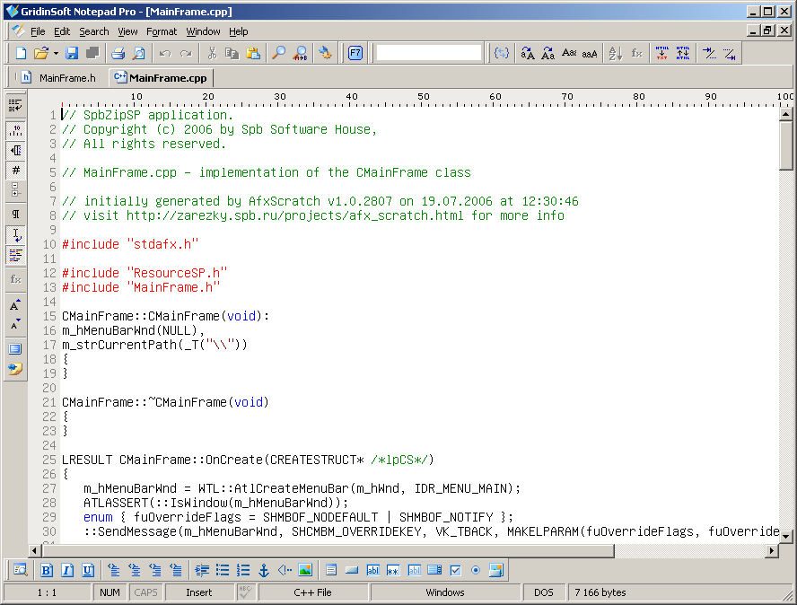 Чрезвычайно приятный редактор исходного кода от нашего соотечественника и коллеги по RSDN Дмитрия Гридина. Поддерживается подсветка синтаксиса и служебной информации в более чем пятидесяти форматах текстовых файлов (HTML, C/C++, ASP, PHP, Perl, Pascal, Cache Object script, MS-DOS batch language, MS VBScript, Visual Basic, SQL, Python, XML, UNIX Shell Script и другие).