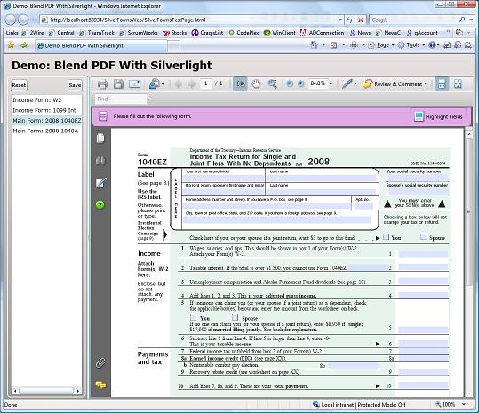 Эта же статья предлагает альтернативный, ориентированный на клиентскую сторону подход, который объединяет PDF-документ(ы) и «несущее» Silverlight-приложение в веб-браузере, исключая тем самым необходимость в серверной логике, реализующей обработку пользовательских PDF-файлов для сбора данных. Преимущества данного решения (включая, в первую очередь, более высокую масштабируемость) будут особенно заметны в том случае, когда мы имеем дело с целым набором PDF-форм, поскольку оно позволяет серверу приложений оперировать только «чистыми» данными и бизнес-логикой, избавляя его от обработки PDF-документов.