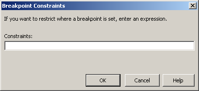 В точках останова появилась и еще одна возможность – ограничений «Constraints» (см. рисунок 15). Однако что это, и с чем его едят, не совсем понятно. К сожалению, Help не подключен к диалогам, связанным с точками останова.