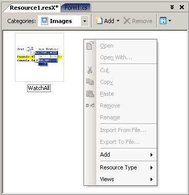 Managed-проекты обзавелись новым редактором ресурсов. Честно говоря старый даже язык не поворачивался называть редактором ресурсов. Он всего лишь позволял редактировать содержимое resx-файлов. Новый редактор позволяет управлять картинками форматов bmp, png, gif, jpeg и tiff. При этом сама VS позволят редактировать только bmp. Для остальных открывается внешний редактор. По умолчанию используется редактор, ассоциированный с расширением файла в Windows, но можно выбрать пункт меню «Open With…», где и настроить любой подходящий редактор (например Photoshop).