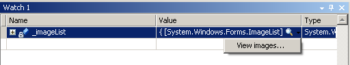 Чтобы лучше разобраться в вопросе, как и с чем едят визуализаторы, я создал визуализатор для объектов класса System.Windows.Forms.ImageList. Этот визуализатор выводит диалог, содержащий элемент управления ListView, в который добавляются элементы, соответствующие картинкам ImageList-а. Названия элементов формируются из их порядкового номера и ключа (если таковой задан).