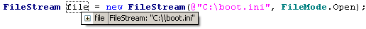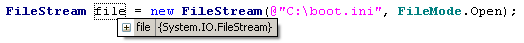 Рисунок 20. Отображение информации об объекте FileStream по умолчанию.
