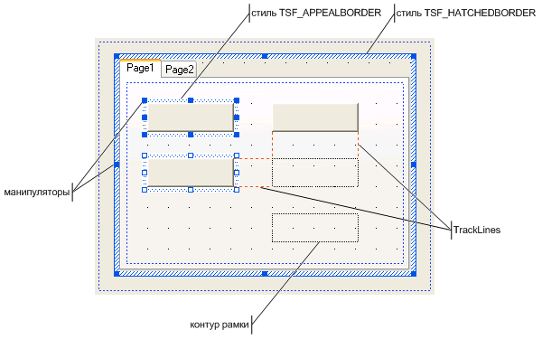 По умолчанию, все манипуляторы рамки являются активными, стиль отображения – TSF_APPEALBORDER (см. рис. 1). Для изменения стилей отображения и коррекции множества манипуляторов предназначен метод void SetStyle (unsigned short uStyle).