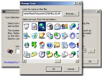 Как-то, разрабатывая одну Мастер-Программу (Wizard Application), мне понадобился диалог для выборки иконок из исполняемых файлов, какой можно видеть, если щелкнуть на кнопку “Change Icon…” из окна свойств любого ярлыка. ( См. Рисунок 1. )