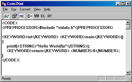 Code2Xml - небольшая утилита, предназначенная для конвертирования кода в HTML или XML с подсветкой синтаксиса. Она используется при оформлении статей для сайта RSDN.