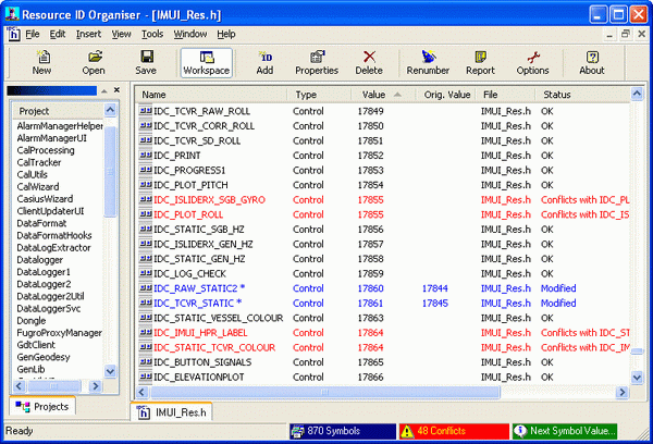 «Организатор и упорядочиватель» идентификаторов ресурсов, выполненный как Add-in для Visual C++ 5.0/6.0/.NET (доступен также и вариант в виде независимого приложения):