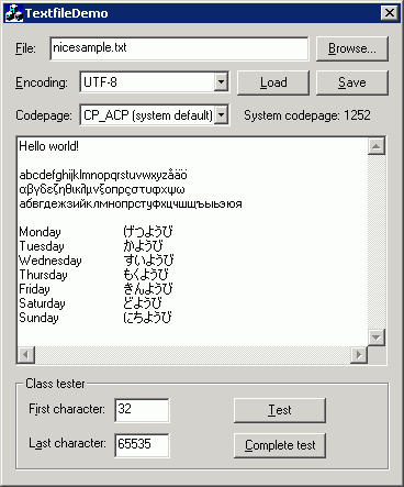 Данный класс предназначен для записи и чтения файлов в различных кодировках – поддерживаются ASCII (различные кодовые страницы), UTF-8, Unicode 16 little/big endian.