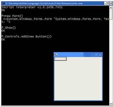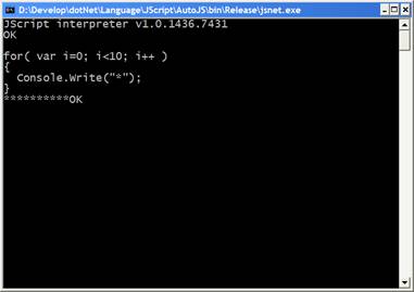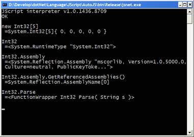 Для того, чтобы этот механизм работал, необходимо зарегистрировать COM-объект Mi.JScript.Interpreter. Я уже об этом позаботился, и нужно только запустить один раз сам интерпретатор, то есть файл jsnet.exe. Сразу же автоматически он устанавливается в GAC, регистрируется как COM-объект и оптимизируется при помощи утилиты ngen.