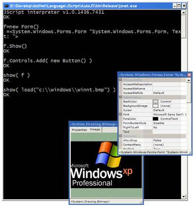 Отдельный хитроумный механизм я сделал для возможности вызвать интерпретатор JScript.NET из обычных скриптов JScript (JScript не-.NET, то есть «старый» Windows Scripting Host). В результате можно использовать широчайшие возможности библиотеки .NET Framework в сценариях.