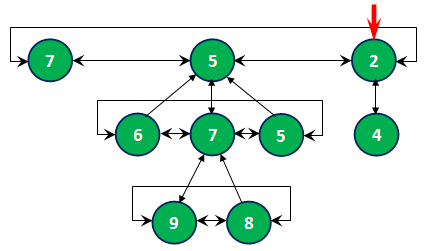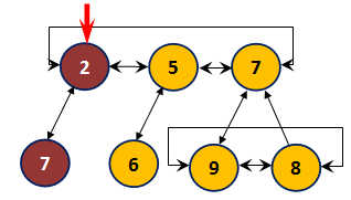 Фибоначчиево дерево – это k-ичное дерево, для каждого элемента которого выполняется правило: «дочерний элемент не превышает своего родителя». Корни фибоначчиевых деревьев хранятся в виде кольцевого списка. Также все дочерние элементы, имеющие общего предка, хранятся в виде кольцевого списка, поэтому элементу-родителю не нужно хранить ссылки на всех своих потомков. Для этого достаточно знать информацию только об одном из них (рис. 9).