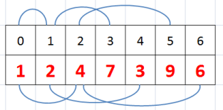 Рисунок 2. Хранение кучи в виде массива. Верхний ряд – индекс элемента, нижний – числовое значение.