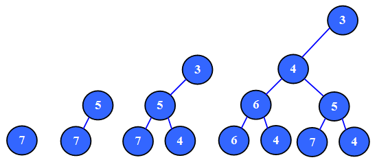 Рисунок 3. Процесс добавления нового элемента в бинарную кучу.