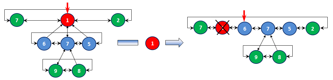 Рисунок 12. Присоединение к корневому циклическому списку дочерних элементов удаляемого элемента.