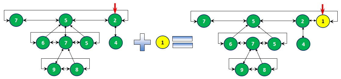 Рисунок 10. Добавление нового элемента в фибоначчиеву кучу.