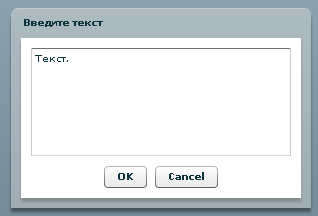 <?xml version="1.0" encoding="utf-8"?> <mx:TitleWindow xmlns:mx="http://www.adobe.com/2006/mxml" layout="absolute" width="300" height="200" title="Введите текст"> <mx:VBox left="10" right="10" top="10" bottom="10" verticalGap="10"> <mx:TextInput id="mytxt" width="100%" height="100%" text="Текст."/> <mx:HBox width="100%" horizontalAlign="center"> <mx:Button label="OK"/> <mx:Button label="Cancel"/> </mx:HBox> </mx:VBox> </mx:TitleWindow> |