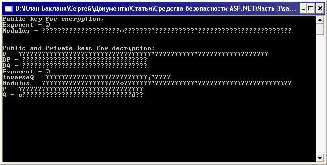 Среди алгоритмов с открытым ключом можно выделить следующие: RSA (Rivest-Shamir-Adleman), DSA (Digital Signature Standard), DH (Diffie-Hellman). Из этого небольшого списка .NET поддерживает лишь первые два – RSA и DSA.