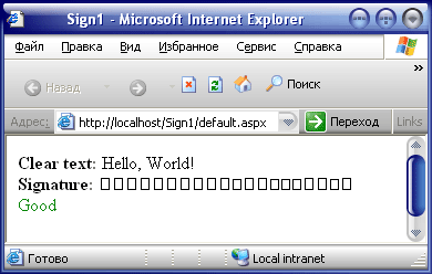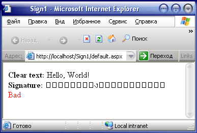 // Исходный текстconststring CLEAR_TEXT = "CreateSignature and VerifySignature";
