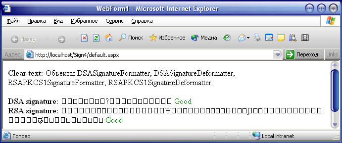 Ещё один способ создать цифровую подпись – это применить объекты DSASignatureFormatter и DSASignatureDeformatter.