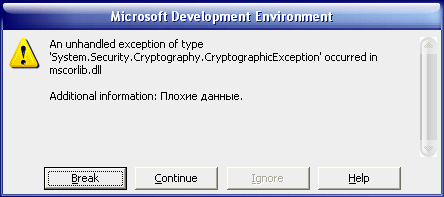 Блочные шифры применяют одно и то же преобразование к тексту, разбитому на блоки, длина которых может быть равна 8, 16, 24, 32 байтам в зависимости от криптометода. Криптосистема, предоставляемая .NET, работает по принципу построения цепочки блочных шифров (Cipher Block Chaining – CBC), которая использует ключ и вектор инициализации (Initialization Vector – IV). Простая блочная система шифрования, не использующая вектор инициализации, преобразует один и тот же блок исходного текста в тот же самый блок зашифрованного текста, т. е. безо всяких перемещений и рекомбинаций. Если у вас был дублированный блок в исходном тексте, то он появится и в зашифрованном. В результате, зная структуру исходного текста, злоумышленник может дешифровать соответствующую часть криптограммы и определить ключ шифрования. Чтобы этого избежать, в технологии CBC информация из предыдущего блока внедряется в шифруемый следующий блок. Поскольку такой подход использует предыдущий блок для шифрования следующего, то IV шифрует самый первый блок. Это позволяет защитить заголовок (первый блок), чтобы взломщик не мог использовать его для получения ключа.