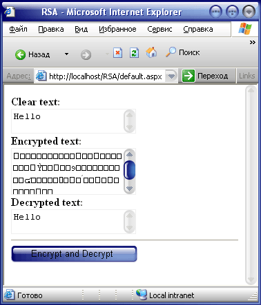 Чтобы не ходить вокруг да около, давайте создадим Web-приложение, выполняющее шифрование методом DES. Для этого создайте новый проект типа Web Application и добавьте в него следующий код: