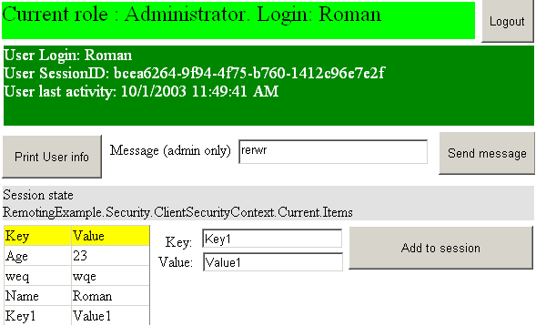 Можно организовать проверку – «один пользователь – одна сессия». Можно добавить шифрование трафика. Свойство Items объектов IsecurityContext может служить контейнером для сохранения различных объектов в сессии пользователя. Путем небольшой переработки клиентской части, это решение можно адаптировать для Windows Forms-приложений. В общем, поле для деятельности большое.
