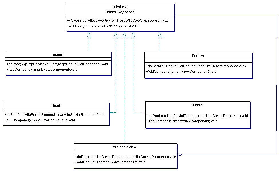 Желательно Servlet'ы писать так, чтобы не повторять один и тот же код, а повторно его использовать, и потом можно будет менять один код в одном месте, а не во многих местах, как чаще всего происходит. Предлагаю применять шаблон Decorator. Диаграмма классов изображена на рис.7.
