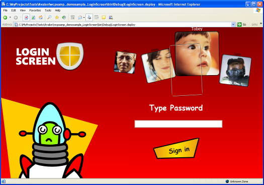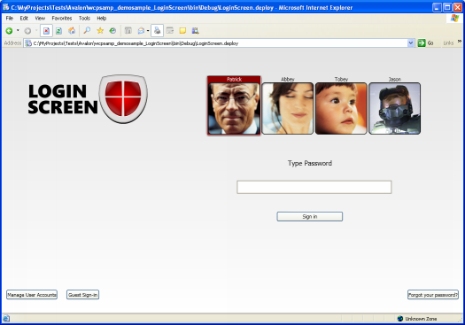 Рисунки 1-4. Динамическое изменение интерфейса (skins). Logon Screen изменяется в зависимости от выбранного пользователя.
