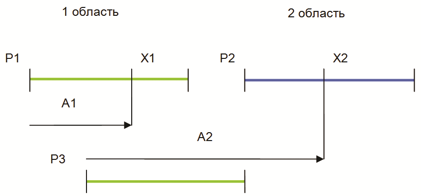 Рис.1 Обращение к элементам массива X1 и X2 в двух несмежных областях