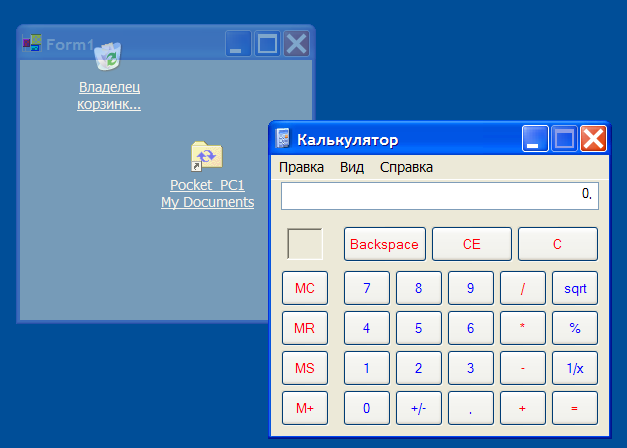 На рисунке 2 показан момент, когда активным является приложение Калькулятор. При этом наша форма стала полупрозрачной и через нее стали видны значки Рабочего стола. Не буду больше утомлять читателя своими примерами, и перейду от частного к общему. Здесь я не стал изобретать велосипед, а решил воспользоваться примером из книги Джона Коннелла "Разработка элементов управления Microsoft .NET на Microsoft Visual Basic .NET". Вот как сам автор книги пишет об использовании сообщений Windows: