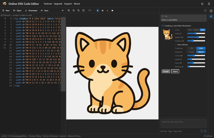 Вот пример генерации SVG котенка от GPT 5.4 ("can you generate svg kitten")